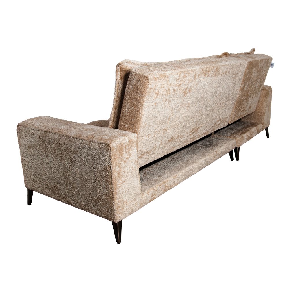 Estética Moderna y Robusta: Tapizado con costuras decorativas y patas metálicas reforzadas.