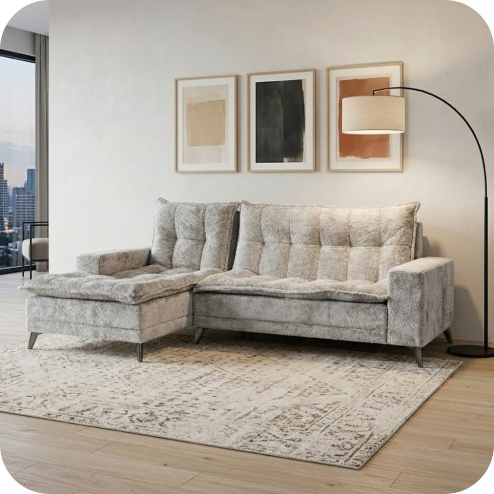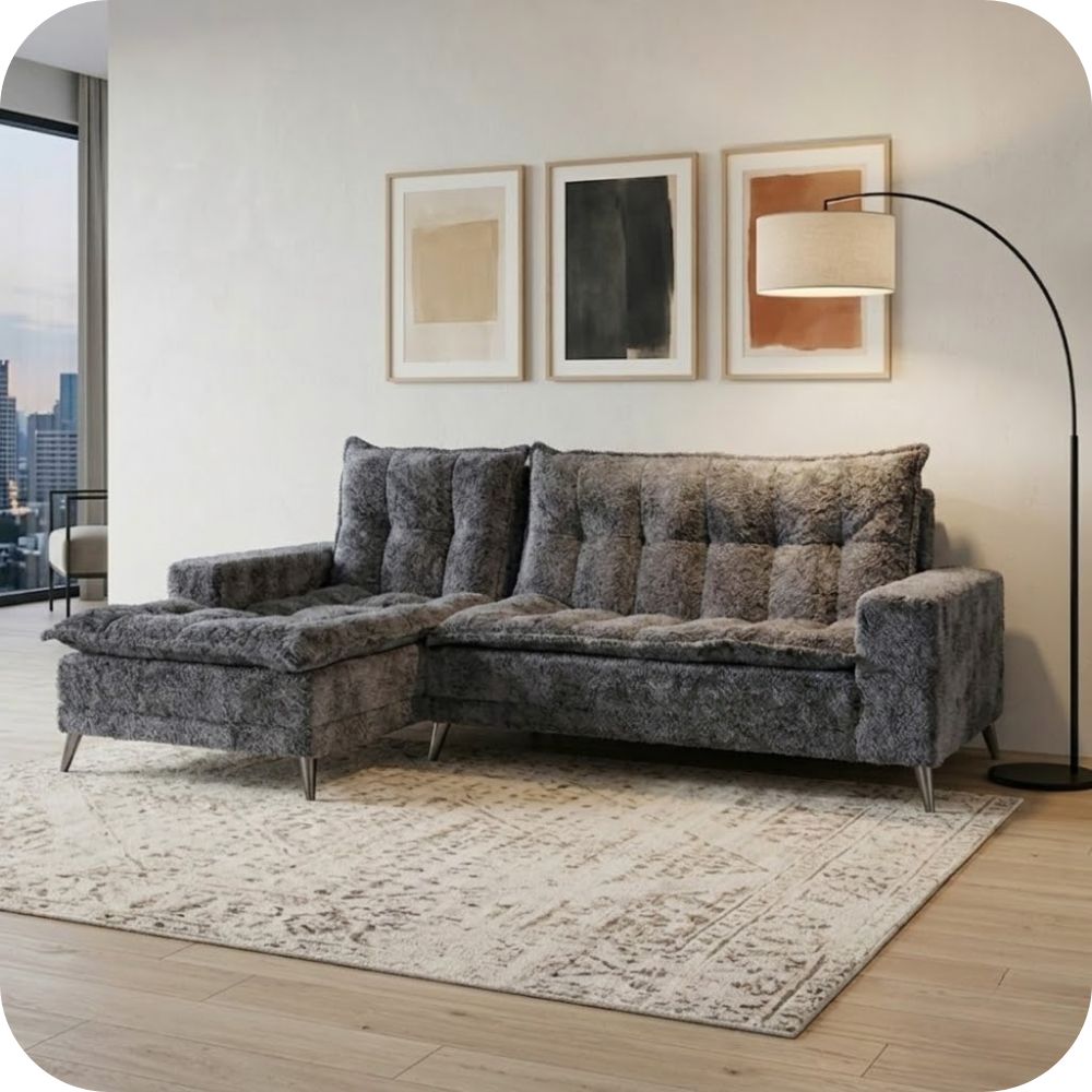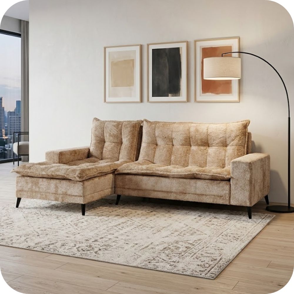 Lleva el confort al siguiente nivel con el Sofá Cama Jennifer. Diseñada para toda la familia, esta pieza combina un amplio chaise longue con un loveseat de respaldos reclinables en 3 posiciones, transformándose en una espaciosa zona de descanso en segundos.