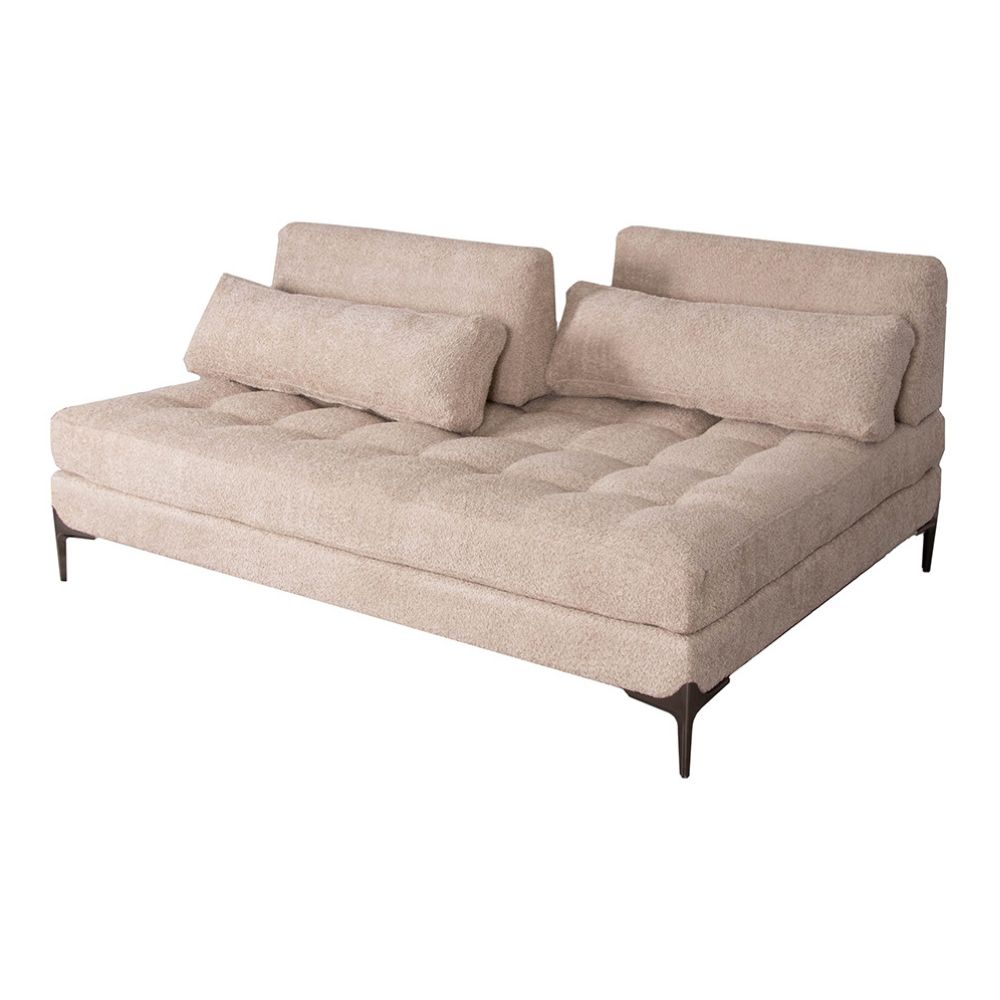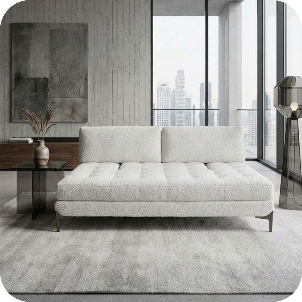 El Sofá Gibra sin brazos redefine la forma en que interactuamos con nuestro mobiliario. Al prescindir de los brazos tradicionales, esta pieza se convierte en una plataforma de descanso versátil que invita a sentarse o recostarse desde cualquier ángulo. Lo que realmente lo hace destacar es su sistema de respaldos ajustables independientes.